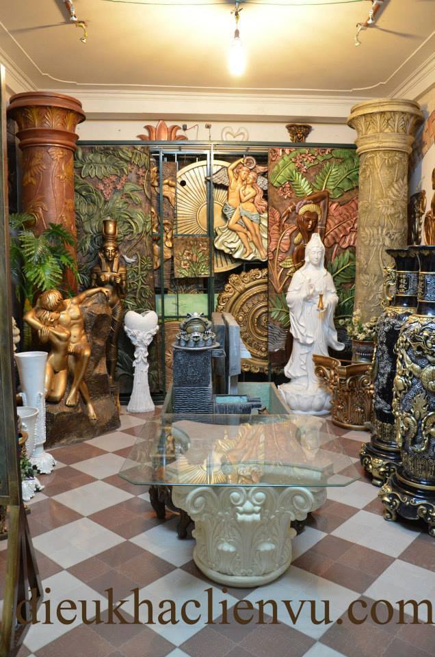 Các mẫu tượng trưng bày Phù điêu composite Mặt hàng trưng bày tầng 2 Tầng 2 Mặt hàng trưng bày tầng 1 Đài nước tầng 1 Lối vào tầng 1 Tầng hầm Mặt trước