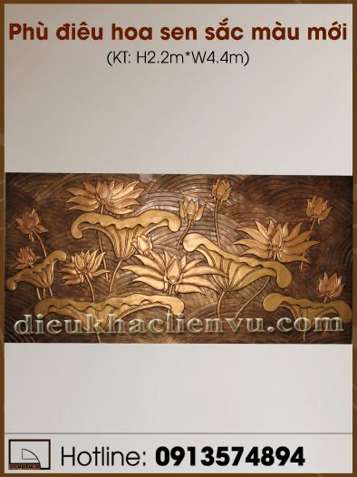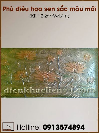 Phù điêu hoa sen sắc màu mới