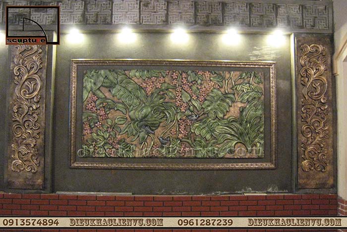 Điêu khắc Liên Vũ: tranh phù điêu hoa lá treo phòng khách vừa mang tính nghệ thuật thẩm mỹ vừa tốt về phong thủy.