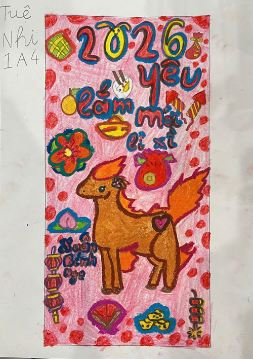 Tết Nguyên Đán xuân Bính Ngọ đang đến rất gần, CLB Mỹ thuật Chất lượng cao - Trường Tiểu học Liên Mạc đã triển khai một dự án nhỏ nhưng mang ý nghĩa lớn: “Thiết kế, trang trí tranh minh hoạ để làm phong bao lì xì ngày Tết”
