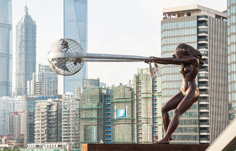 Bức tượng “Sức mạnh của thiên nhiên” - Tác phẩm của nhả nhà điêu khắc người Ý Lorenzo Quinn đặt tại Bảo tàng Nghệ thuật hiện đại (Thượng Hải-Trung Quốc)