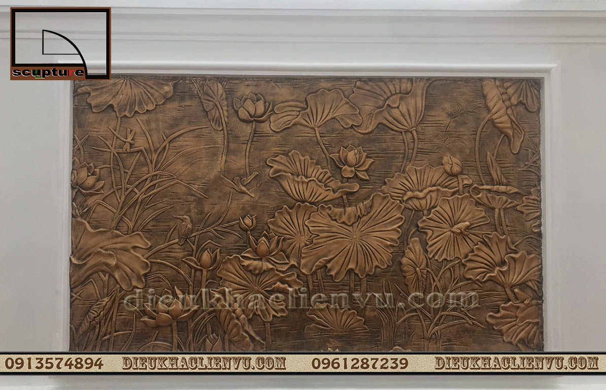 - Có lẽ cũng chính bởi những giá trị tuyệt vời mà phù điêu hoa sen có thể mang lại cho không gian trưng bày cũng như cuộc sống con người. Nên tranh phù điêu hoa lá sen với đủ các kiểu dáng, kích thước, chủ đề thể hiện đang ngày càng được yêu thích và ứng dụng trang trí trong nhiều không gian kiến trúc khác nhau.